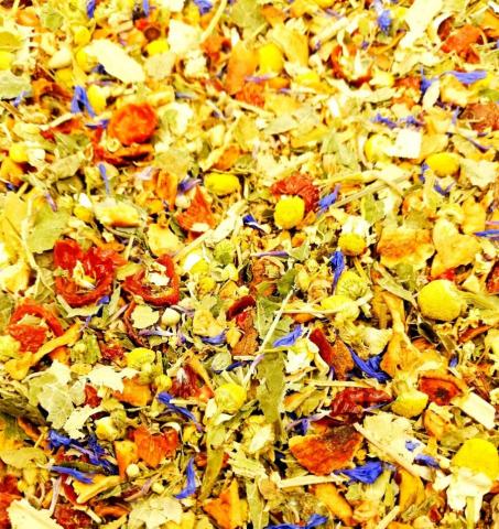 Koostisosad: õun( 20 %), pärnaõis(18%), kibuvitsamari, kummeliõis, musta leedri õis, mustsõstraleht, angervaksaõis, rukkililleõis.
