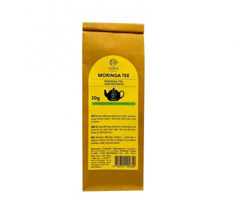 Moringa tee 20g 5,90 €Moringa( Moringa oleifera ) lehtede tee. Võid lisada teele laimi, mett või piima. Valmistamine: 1,5 tl/200ml/95C/6-8 min Päritolumaa: India Sisesta kogus